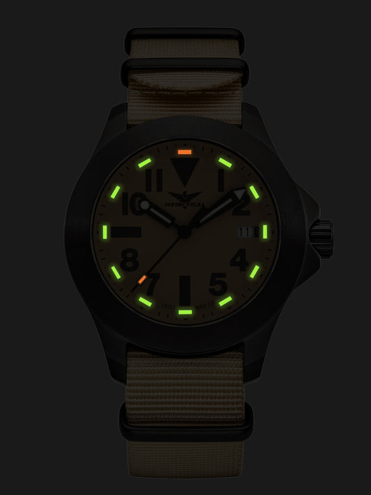 H3TACTICAL Trooper Commando H3 Uhren sind robuste Armbanduhren mit PVD-beschichteten Edelstahlgehäuse. Sie sind mit einem kratzfesten Saphirglas ausgestattet, 100m wasserdicht und besitzen ein klar gestaltetes Zifferblatt. Mit der permanenten schweizer H3-GTLS Beleuchtung trigalight® wird das Zeitablesen auch bei Dämmerung und Dunkelheit ermöglicht. Erstmalig wurde bei dieser Modellreihe auf dem Zifferblatt schwarze C1 Leuchtmasse aufgebracht. H3TACTICAL Commando Uhren sind als 3-Zeiger Modell mit Datum und mit farblich zum Zifferblatt passendem Natoband erhältlich. H3TACTICAL Commando Uhren werden von Polizei, Militär, Feuerwehr und Rettungsdienst, wie auch von Outdoorbegeisterten getragen und sehr geschätzt.