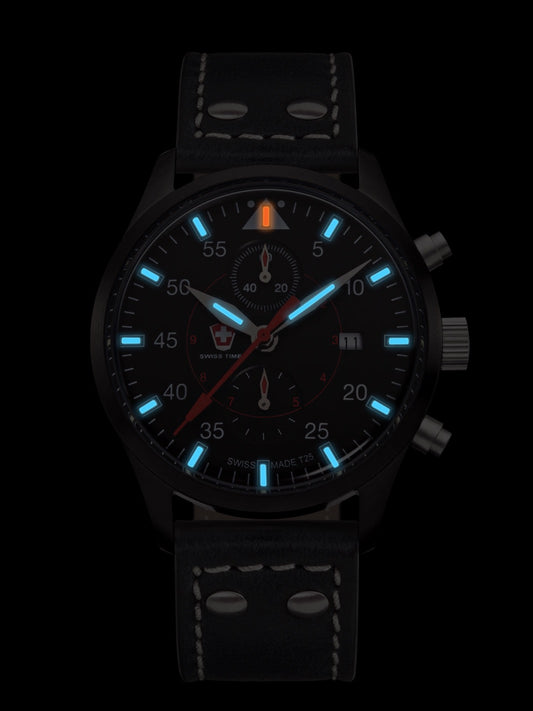 Auf BestellungSWISS TIMER Aviation H3 Uhr Chronograph mit Lederband