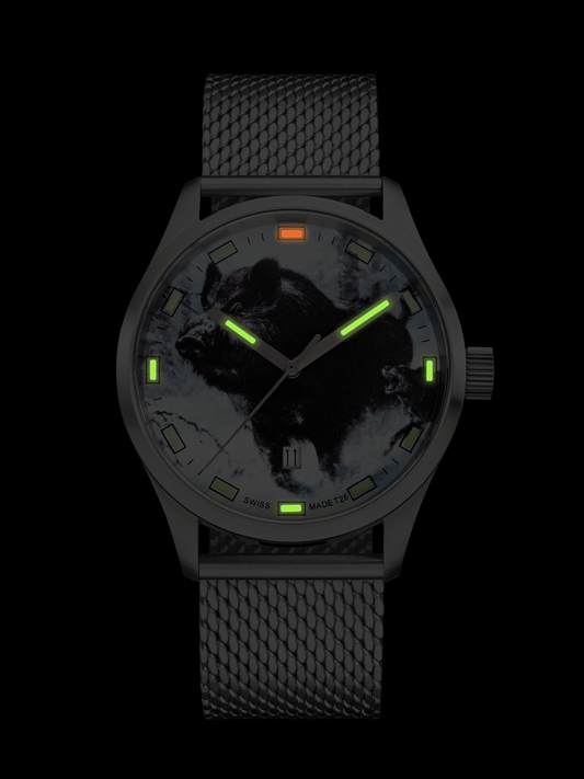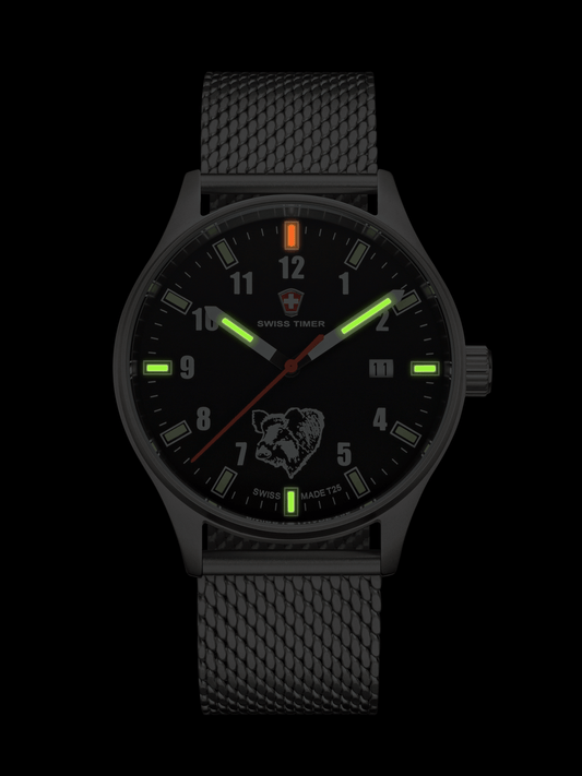 Auf BestellungSWISS TIMER Trapper H3 Uhr Wildschwein mit Edelstahlband