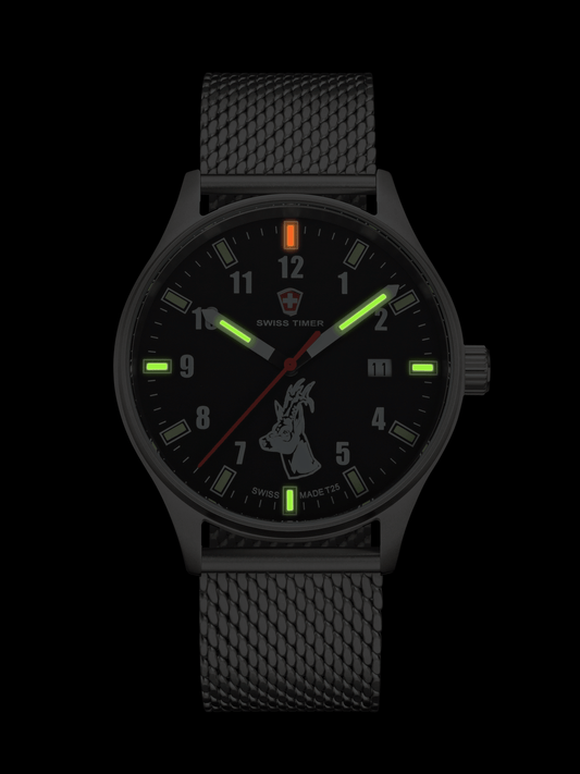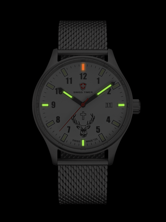 Auf BestellungSWISS TIMER Trapper H3 Uhr Hubertus mit Edelstahlband