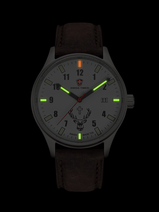 Auf BestellungSWISS TIMER Trapper H3 Uhr Hubertus mit Lederband